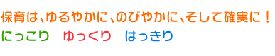 子どもが「こどもらしく、のびのびと」育つよう一人一人を見つめた保育を行い、その中で社会性(集団生活)を身につけさせてゆく。